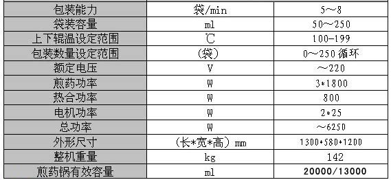 | 功能特性 草藥煎制、包裝集為一體,居國內(nèi)首創(chuàng)。同時可方便大劑量、多處方的煎藥以及煎藥過程中要求加(后下)的煎制及包裝。 電子控制采用數(shù)字化技術(shù),且具有醒目的數(shù)字顯示與聲響提示。草藥煎制及過濾裝置,采用優(yōu)質(zhì)的高硼硅玻璃不銹鋼孔網(wǎng)精密制作,能清楚地觀察草藥的煎制過程。 電控盒符合人工程學設(shè)計,位于箱體右上方,高度適中操作方便,防水可靠。 采用粘合強度高,衛(wèi)生專用的塑料薄膜復(fù)合帶,并內(nèi)藏式安裝,便于高速和操作。 儲液槽位于箱體頂面前部,且配有可開合蓋,便于觀察和清洗。 本機采用優(yōu)質(zhì)進口流量傳感器,使自動計量上水誤差小于3%。 管路具有減壓裝置,安全可靠。 機器前門安裝有透明有機玻璃窗,方便觀察包裝情況。 整機外形緊湊,便于運輸及安置。 兩次煎藥:煎藥效果比一次煎藥更優(yōu)良。 國家醫(yī)藥局推薦產(chǎn)品 產(chǎn)品參數(shù) ![]() | |